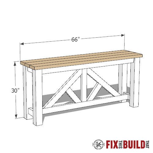 This DIY truss sofa table has a ton of character with inexpensive materials. With easy joinery and a unique design, this project is great for beginners and pros alike. As designed it sits 30” tall, 66” long and 16.5” deep, but can be modified to suit your needs.