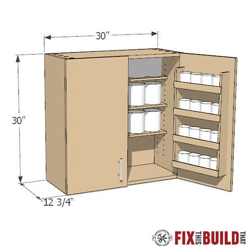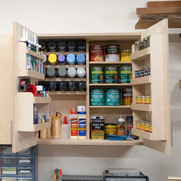 Take organization in your garage or workshop to the next level! Get plans to build two 30" x 30" wall cabinets out of two sheets of 3/4" plywood. Add a sheet of 1/2" plywood and a 1/4 sheet of 1/4" plywood and make 4 different door racks and some moveable cubbies.