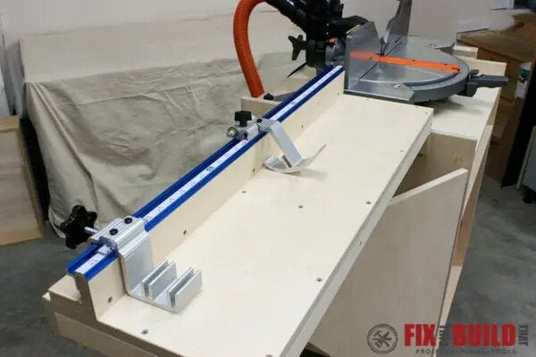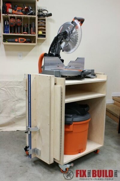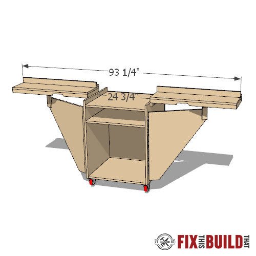 Need the function of a built-in miter saw station but don't have the space? Build this Mobile Miter Saw Stand and get mobility, support, and function for your miter saw. It's made from 2 sheets of 3/4" plywood and with wings extended it will support just under 4' of stock on each side, letting you make end cuts on 8' stock with the support you need.