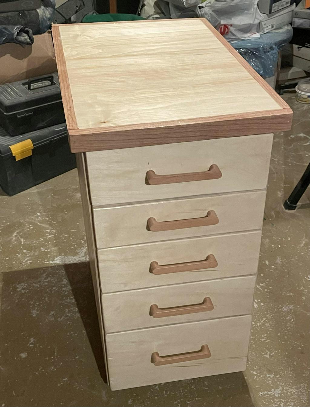 This Drill Press Stand is the perfect addition to organize all your drill press accessories and adds mobility to an essential shop tool. Five drawers create a ton of storage options. The cabinet is 16-1/2” wide, 25” deep and stands 34-1/2” tall with casters installed and can be made from just 1 sheet of 3/4" plywood, a little over a half sheet of 1/4" plywood, and some solid wood trim.
