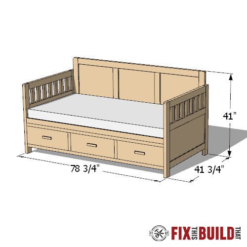 Want easy to follow plans with simple joinery and detailed instructions, cut lists and parts lists? With this plan you can build a bed that will look great and pull storage duty too. This twin size daybed is perfect for a kid’s first big bed or a guest room. It has tons of storage underneath and looks sleek as well. The construction is easy with pocket hole joinery and all lumber can be bought from your local home center. Measures 78-3/4" wide, 41-3/4" deep, and 41" tall.